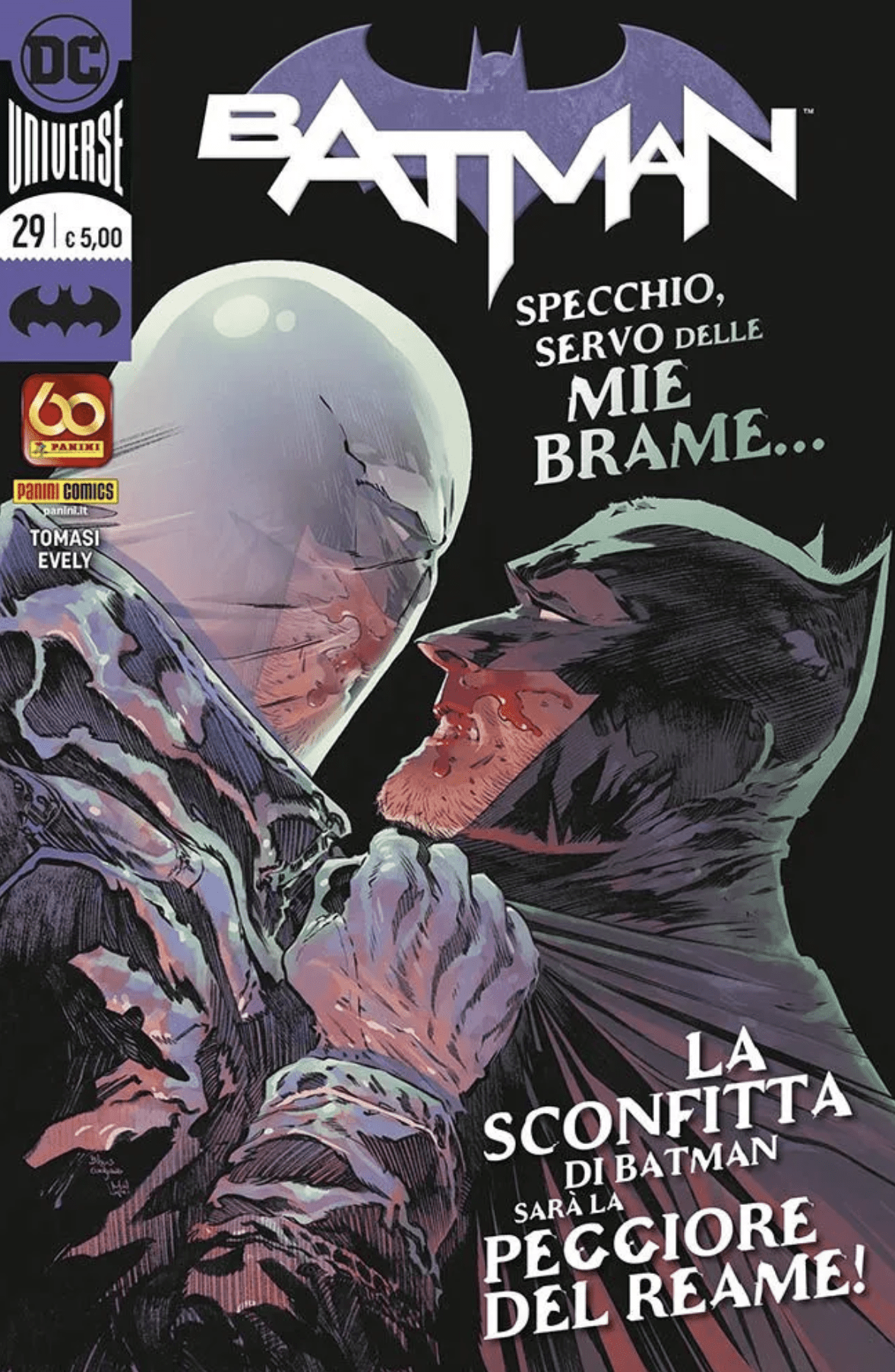 • C’è un nuovo nemico in città, e il suo nome è lo Specchio! • Mentre la Bat-famiglia è in fuga dall’esercito del supercriminale, nell’ombra c’è qualcuno che trama… • …ed è un un gioco del gatto con il topo tra padre e figlio: Damian Wayne sta per fare ritorno! • Continua il ciclo di Peter J. Tomasi, questa volta affiancato dalla bravissima Bilquis Evely!